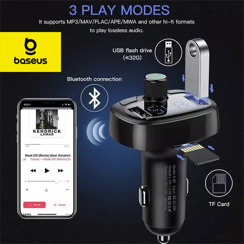 Baseus Car Charger Dual USB FM Transmitter Bluetooth MP3 S-09