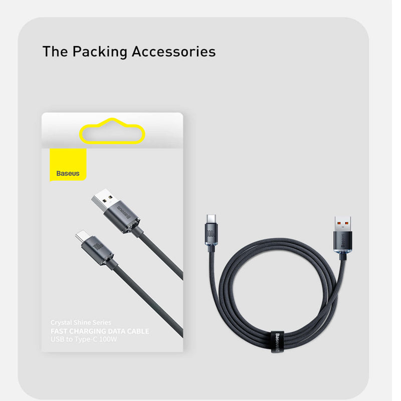 Baseus Crystal Shine Charger Cable 100W 5A USB Type A to C 1.2 M Nylon
