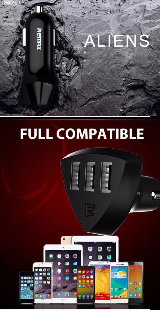 Remax 4.2A 3USB Car Charger, Remax ALIENS Series Smart Car Charger Adapter Power Adapter Universal For iPhone Samsung Huawei Xiaomi Smartphones RCC304