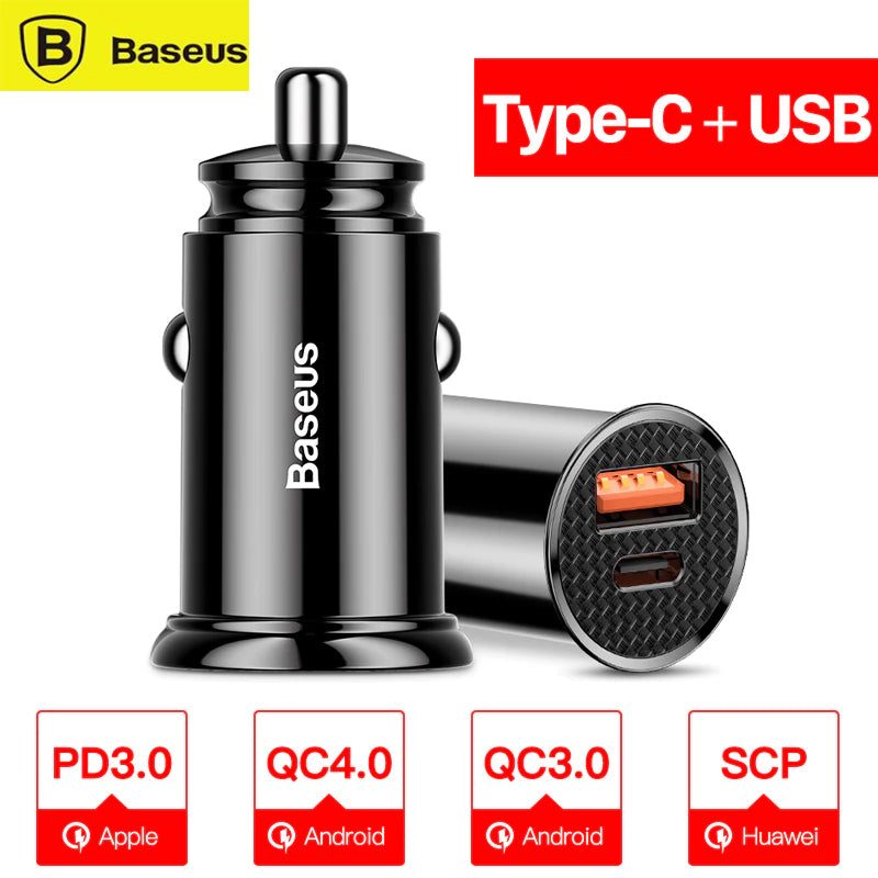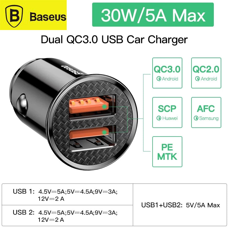 Baseus Dual USB Car Charger 5A Fast Charing 2 Port 12-24V Cigarette Socket Lighter Car USBC Charger