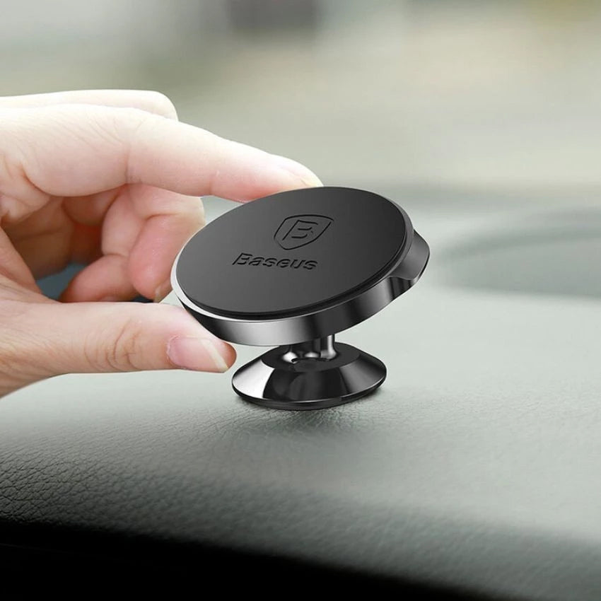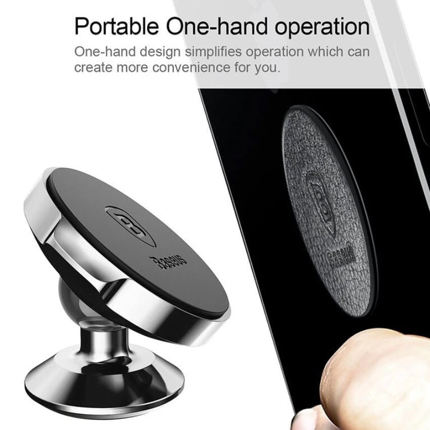 Compact magnetic car holder for any flat surface Compact size – Mount is not blocking your field of view. Durable and reliable – Made of high-quality aluminum material with PU leather covered panel. Powerful magnetic grip – 4 sturdy magnets allow a firm grip on the phone throughout your trip. One-hand operation – You can fix the mobile phone and use it with only one hand. Does not affect driving and your safety. 360º angle movement – Headball under the magnetic plate gives 360º rotational function for unlimited viewing surfaces. Extra metal plates – Besides phone cover, in the set, you can a 2 metal plates including 1 in PU leather cover. Specification: Brand: Baseus Name: Small Ears Material: aluminum + ABS + TPU + PU leather Fixed position: any flat surface Size: 2,8 x 4,1 x 3,6 cm Weight: 44 g Compatibility: any phone with an attached metal plate or suitable phone case Additional features: full 360 rotation Package includes: car mount, metal plate