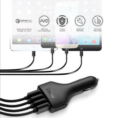 AUKEY CC-T9 Portable QC3.0 4 Ports Car Charger Adapter Quick Charge