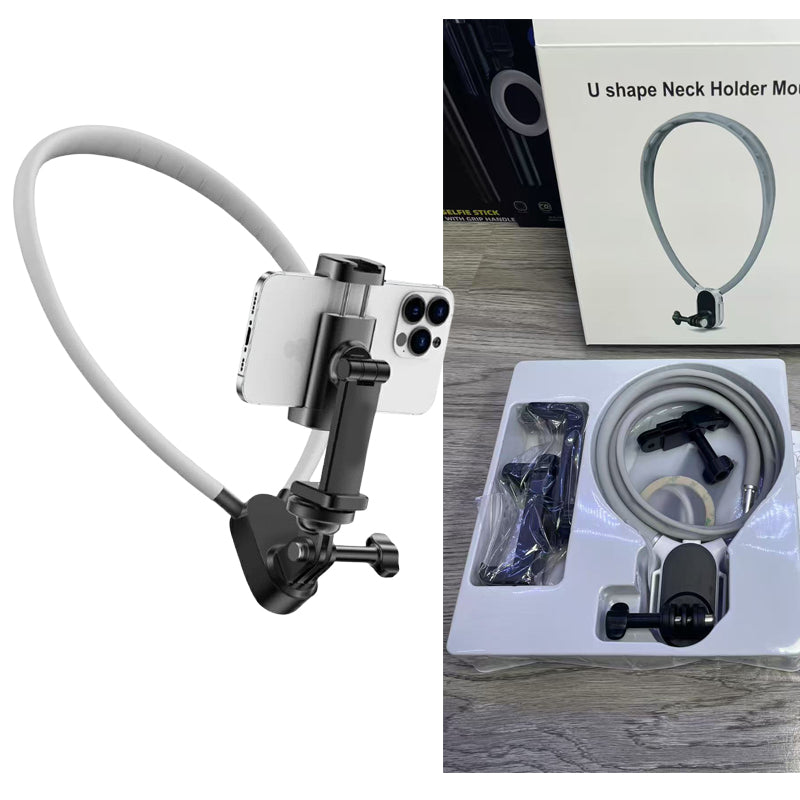*Hands-Free Convenience: With its unique neck-mounted design, this holder allows you to use your phone or camera without needing to hold it, freeing your hands for other tasks while stable recordings.