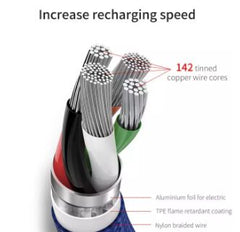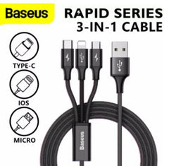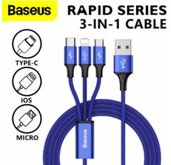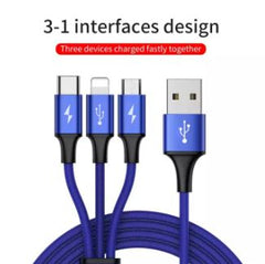 3 in 1 fast charging at the same time Lightning / Type C / Micro USB Easy to bend, stretching-resistant 3A Max output fast charging With high-quality aluminum alloy shell, not rusty and corrosion-resistant With high-quality woven nylon material Simultaneous charging at 3 devices Widely Compatible Length - 1.2meters