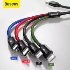 Brand Name:BASEUS Compatible Brand:Nokia,SONY,LG,Motorola,Samsung,Apple iPhones,HTC Type:All-in-One Name:Baseus 4 in 1 Fast Charging Cable 3.5A 1.2M Material:Aluminum Alloy + Fish Silk Braided Wire Length:120cm (90cm+30cm) Feature:for iPhone + USB Type C + Micro Cable Compatible:Cable for iOS 9 10 11 & USB Type-C & Android Color:Black(double Lightning);Blue(double Type-C);Green(double Mirco)