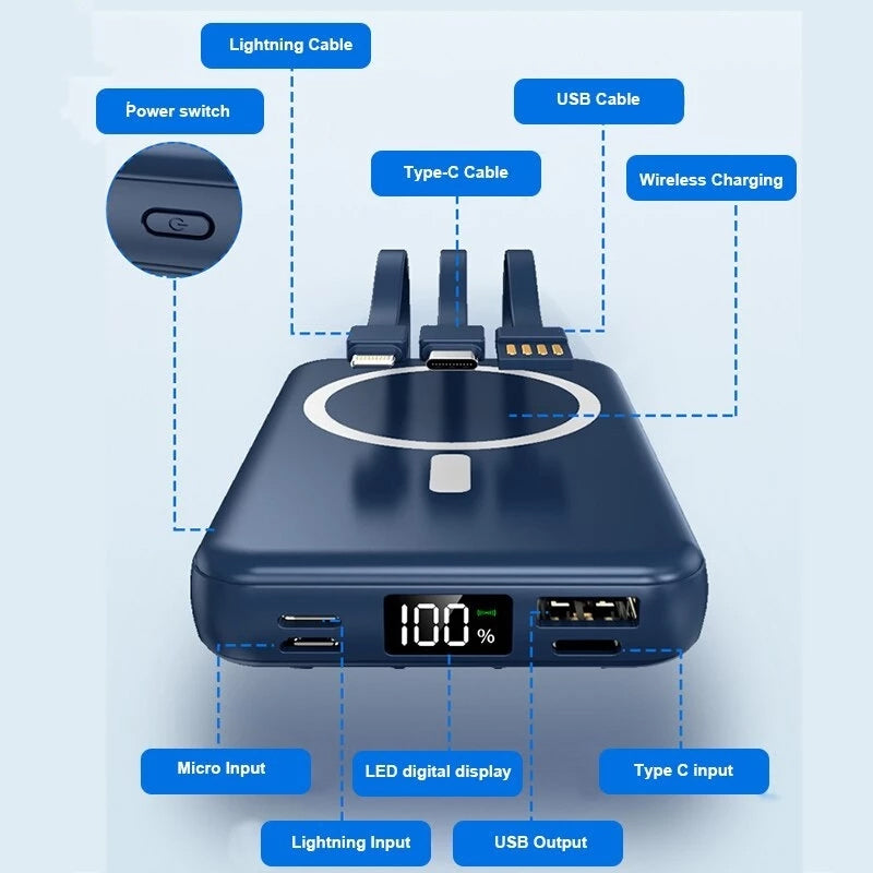 SG [READY STOCK] 10000mAh magnetic power bank portable charger Mini Wireless Fast Charging With 3 Cable Slim powerbank